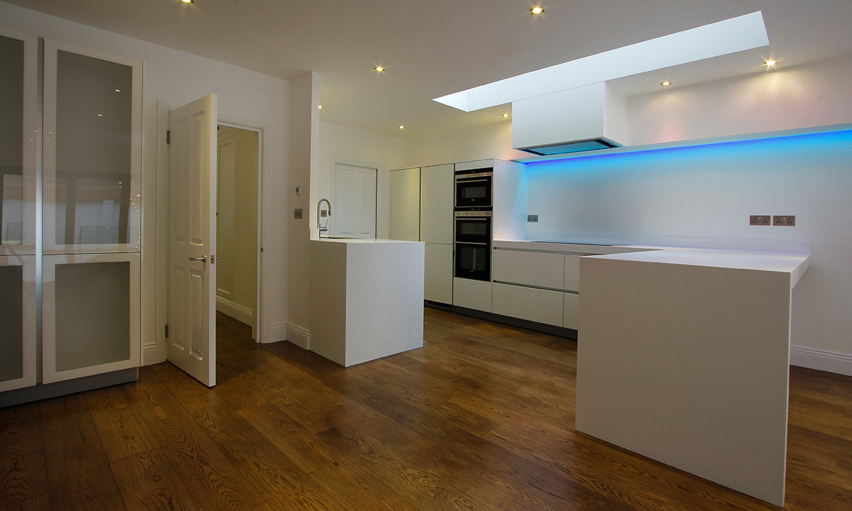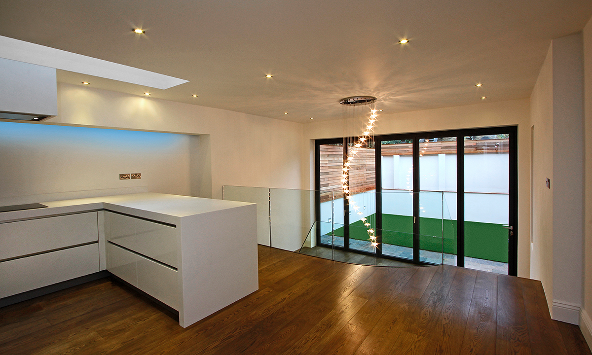 This mid terraced home on a busy residential road in London, had to be entirely demolished except for the front façade. The front façade had to be retained to create the illusion of your typical terraced house, not dissimilar from all others on the road. However, once Rhino, working with the architect David Bell, had constructed the basement and built the ground and first floor extensions, it was most definitely not your typical terraced home. Instead we created the clients dream modern home, delivering results the entire team are extremely proud of.