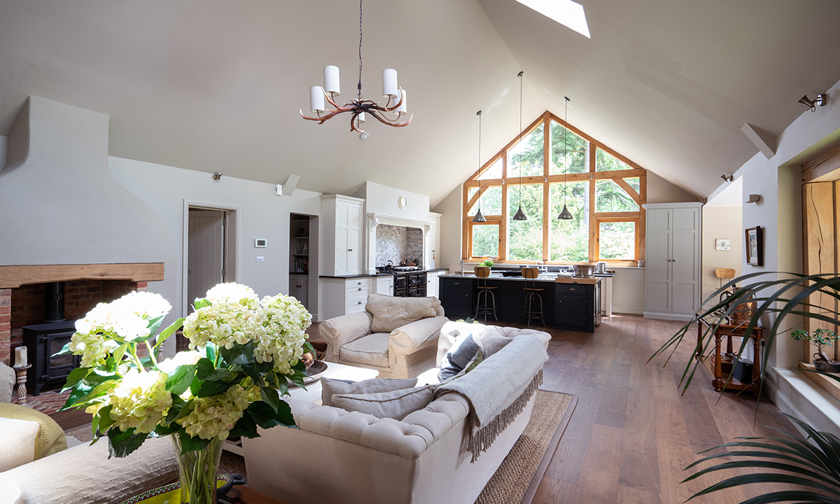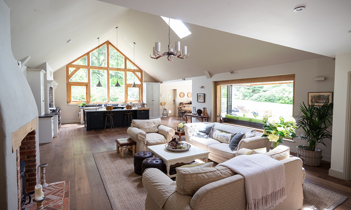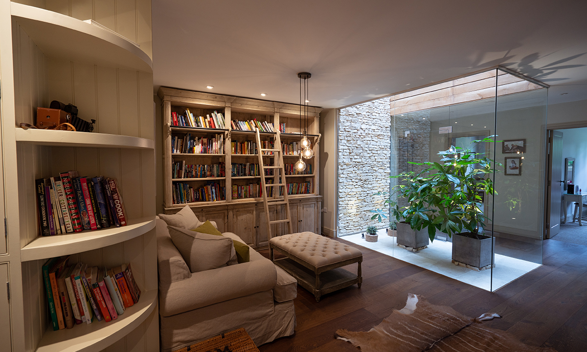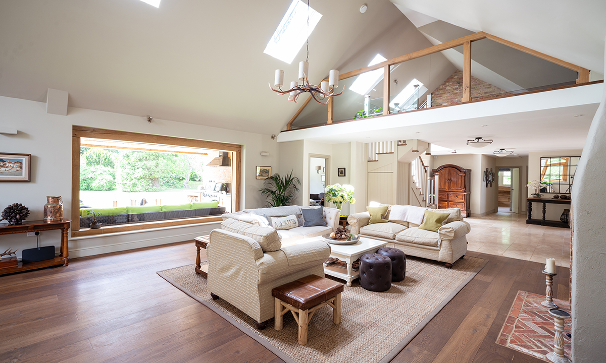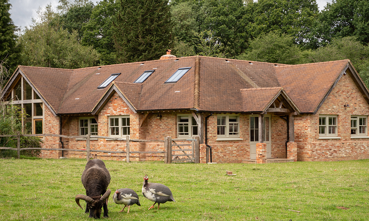 This project involved transforming an existing bungalow into a beautiful new country house. The process required raising the existing bungalow by almost a meter and changing the garden levels around it and creating a pond. The design cleverly used the existing roof space and along with the extensions which included a basement, resulted in an unusual but fabulous family home.