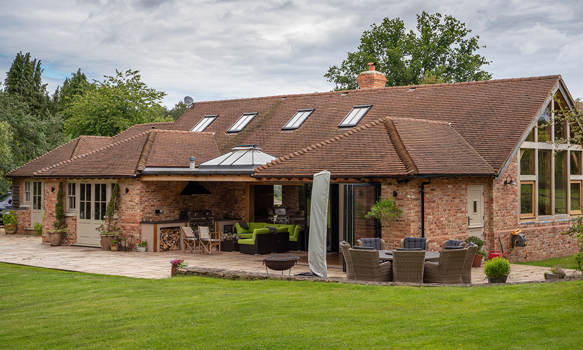 Reclaimed bricks were used in the construction along with recycled earthwool insulation. Together with this a heat recovery system was used to create a comfortable environmentally friendly home. Further to the owners wish to recycle and upcycle as much as possible, the pond harvests the rain water off the roof and provides a home to a vast array of wildlife.