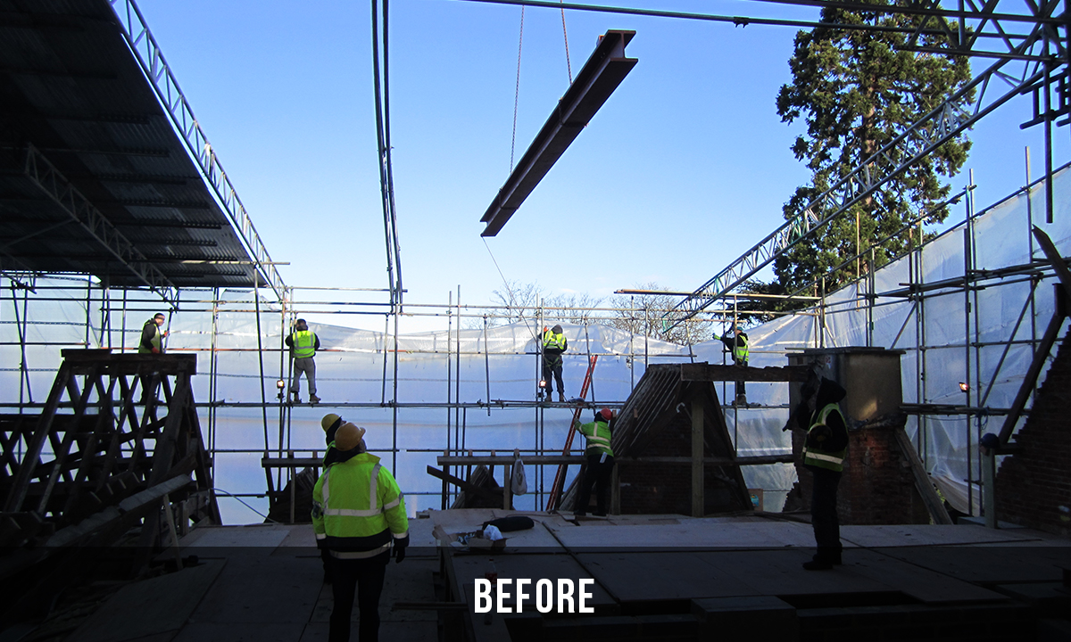 The architects and engineers all agreed that this was one of the most technically challenging projects that they had encountered to date. Working with Ed Toovey Architects and PJCE Engineers, Rhino was tasked with removing the existing roof structure and installing 14 tons of structural steel to facilitate the construction of additional student and staff accommodation within the roof space. Health and Safety was critically important during all phases of the build as the project was undertaken during school term time, with the building in constant use by students and staff. Our team were DBS checked and we worked in partnership with the school to minimize any potential disruption. The other challenges included the preservation of the historic building and bat conservation. This was achieved by sympathetically rebuilding the roof on the new steel structure using natural slate tiles and VM zinc cladding.